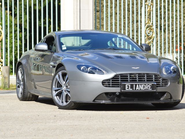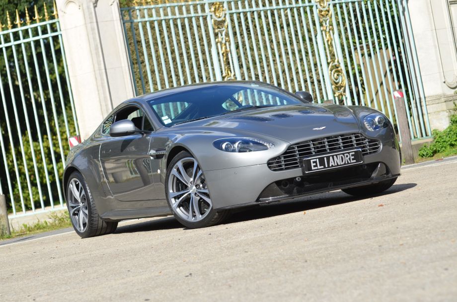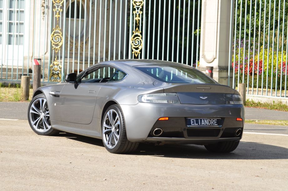 Rare Aston Martin Vantage 6.0 V12 Coupé boite de vitesse mécanique 1ère main, livrée en 10/2009 millésime 2010 par Aston Martin Auto Performance Paris, gris Tungsten, sellerie cuir noir, carbone, 4 pneus neufs, carnet complet et à jour Aston Martin